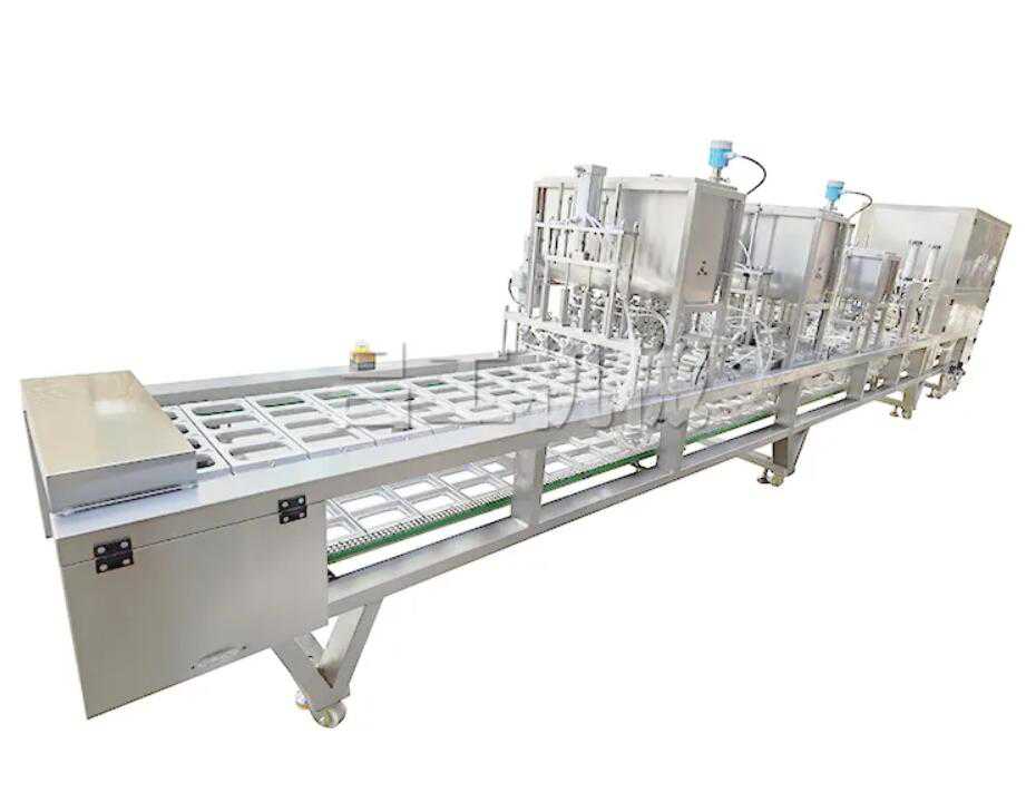 本機(jī)采用合理的機(jī)械傳動(dòng),功能齊全,灌裝、封口、切邊、制品推出,廢料收卷,印碼等自動(dòng)化工作,可節(jié)約人力,降低成本。本機(jī)有二次熱封裝置,料杯/碗/盒與封膜經(jīng)過(guò)前后二次熱封,封口牢固可靠。