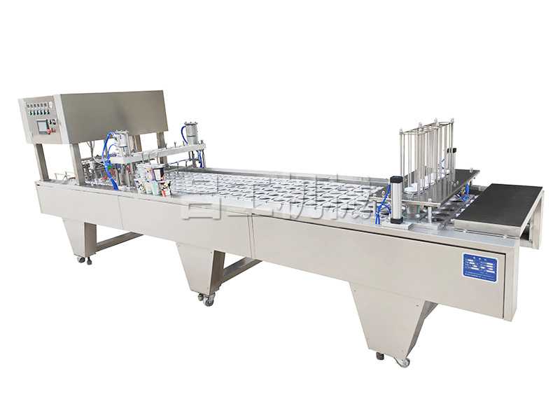本機(jī)采用合理的機(jī)械傳動,功能齊全,灌裝、封口、切邊、制品推出,廢料收卷,印碼等自動化工作,可節(jié)約人力,降低成本。本機(jī)有二次熱封裝置,料杯/碗/盒與封膜經(jīng)過前后二次熱封,封口牢固可靠。